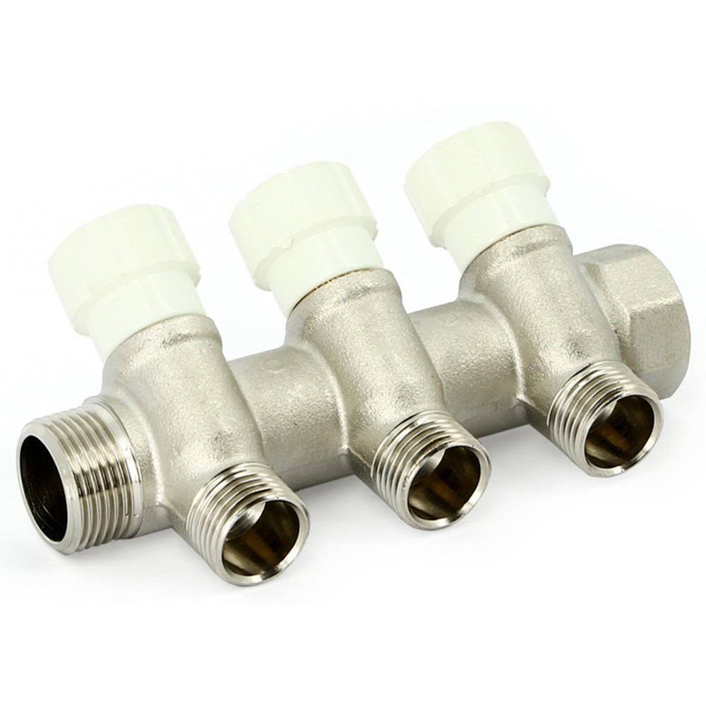 Коллектор Uni-Fitt НВ 1"х3 вых 3/4" ЕК 40 мм с вентилями, никелированный