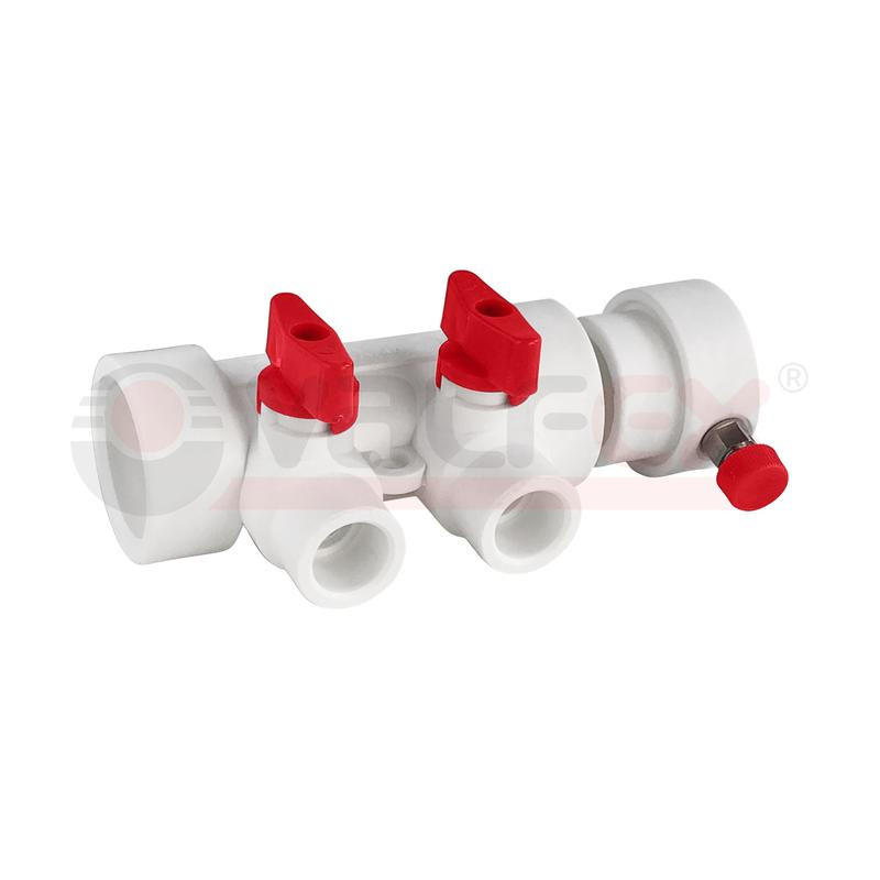 Коллектор PPR с отсечными красн. кранами и воздух-ком 40х20 8 выходов (15/1) бел. K VALFEX 111134008R