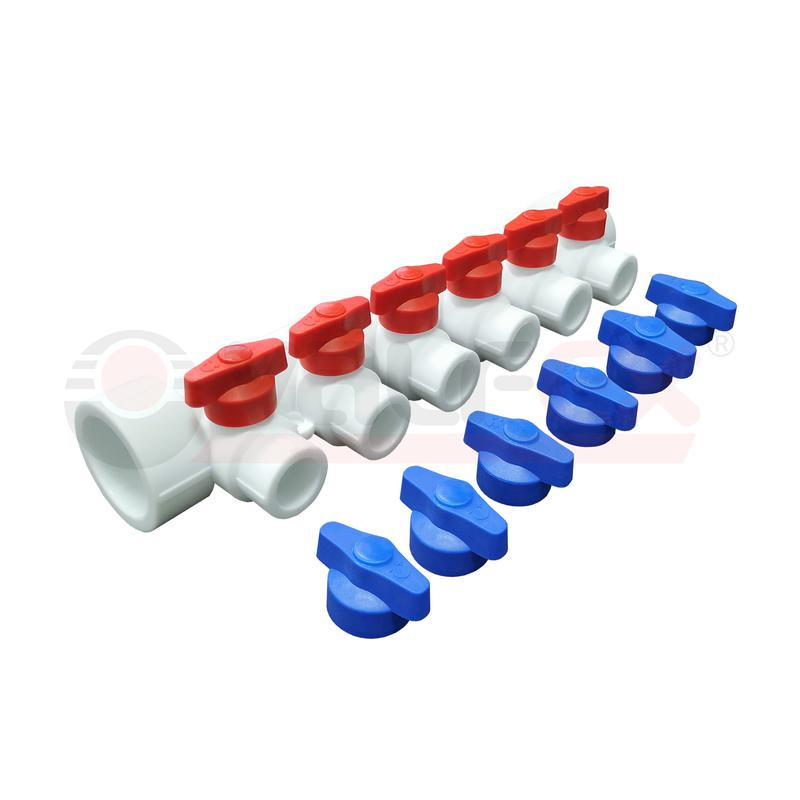 Коллектор универсальный с отсечными кранами 40х20 на 3 выхода (10/1) бел. VALFEX 101134003