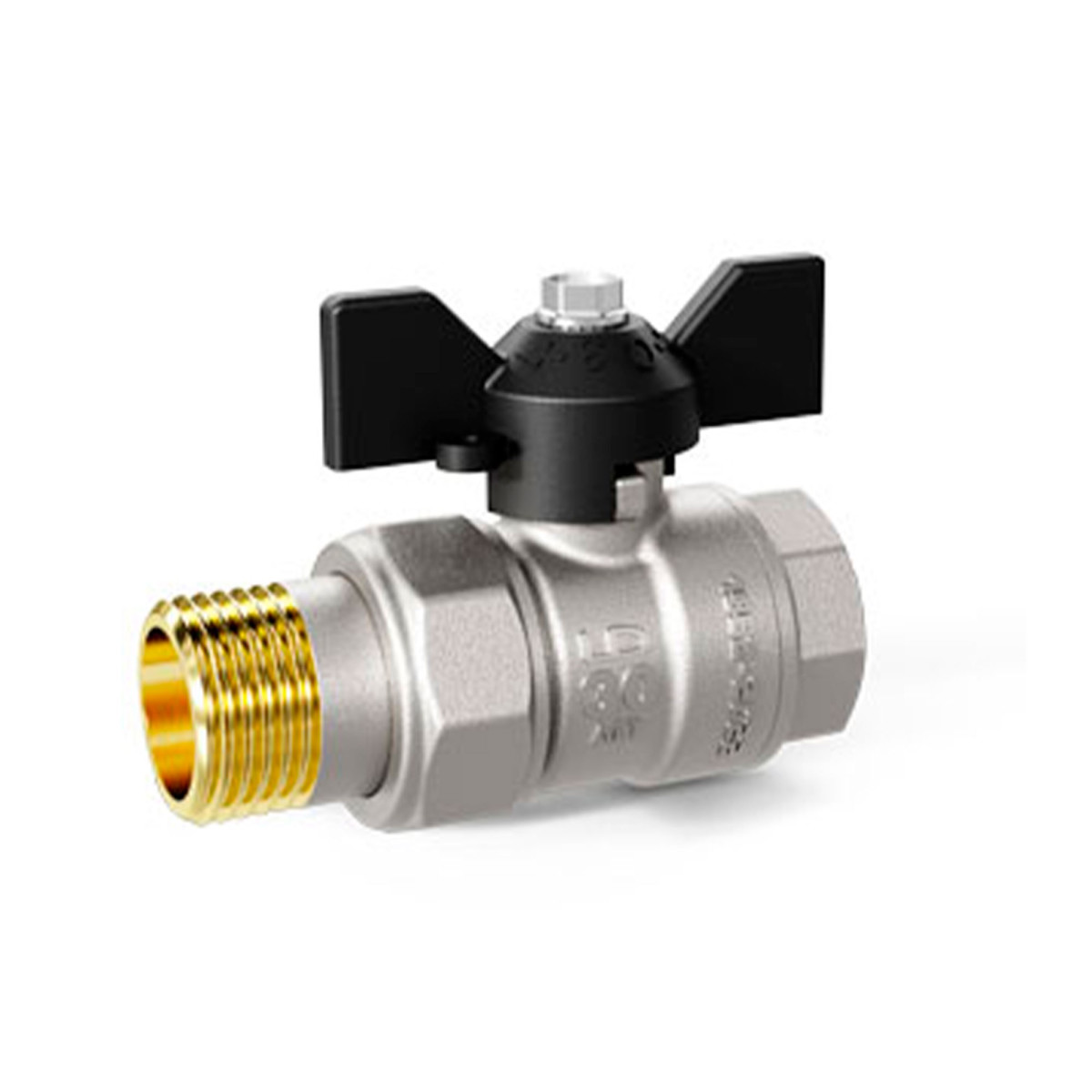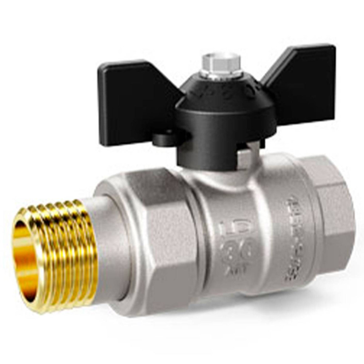 Кран шаровый полнопроходной угловой с накидной гайкой MVI 3/4", внутренняя-наружная, бабочка