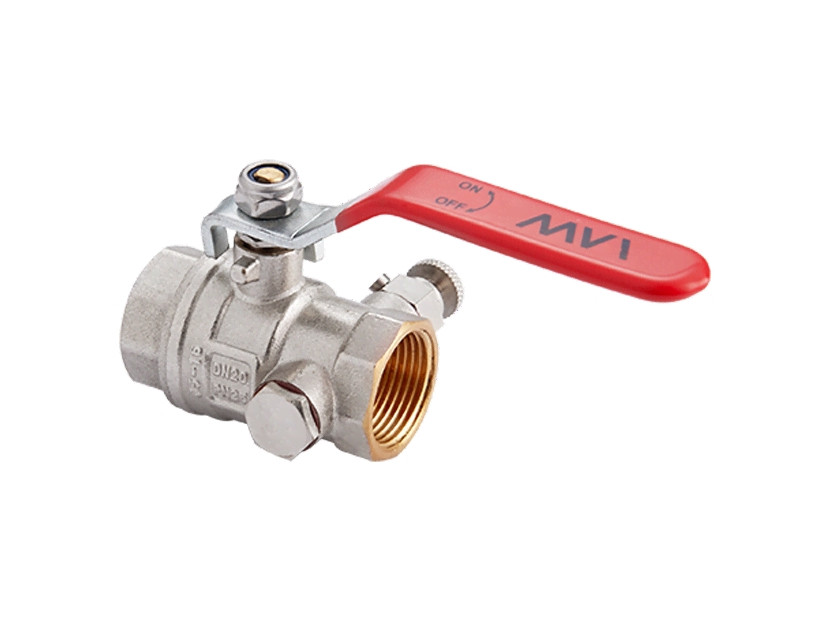 Кран MVI шаровый латунный с дренажём и воздухоотводчиком Ду 20 PN40 вн-вн, рычаг