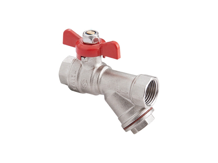 Кран шаровой латунный MVI с фильтром DN15 PN25 вн-вн, бабочка, полнопроходной