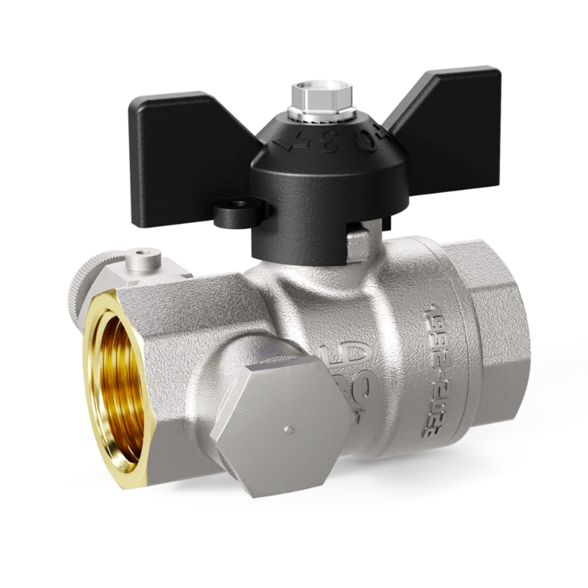 Кран шаровой латунный LD Pride 44.15.В-В.С.Б с дренажем и воздухоотводчиком (бабочка)