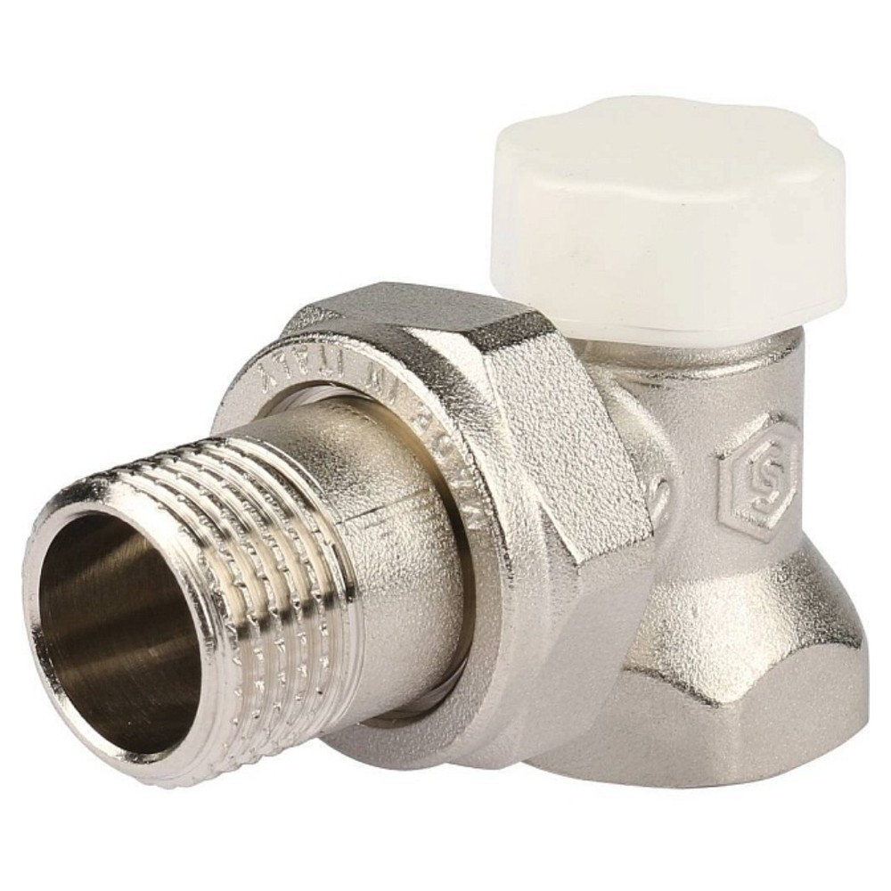 Клапан радиаторный VARMEGA 1/2" x 3/4"EK запорный, угловой с самоуплотняющимся полусгоном VM10212