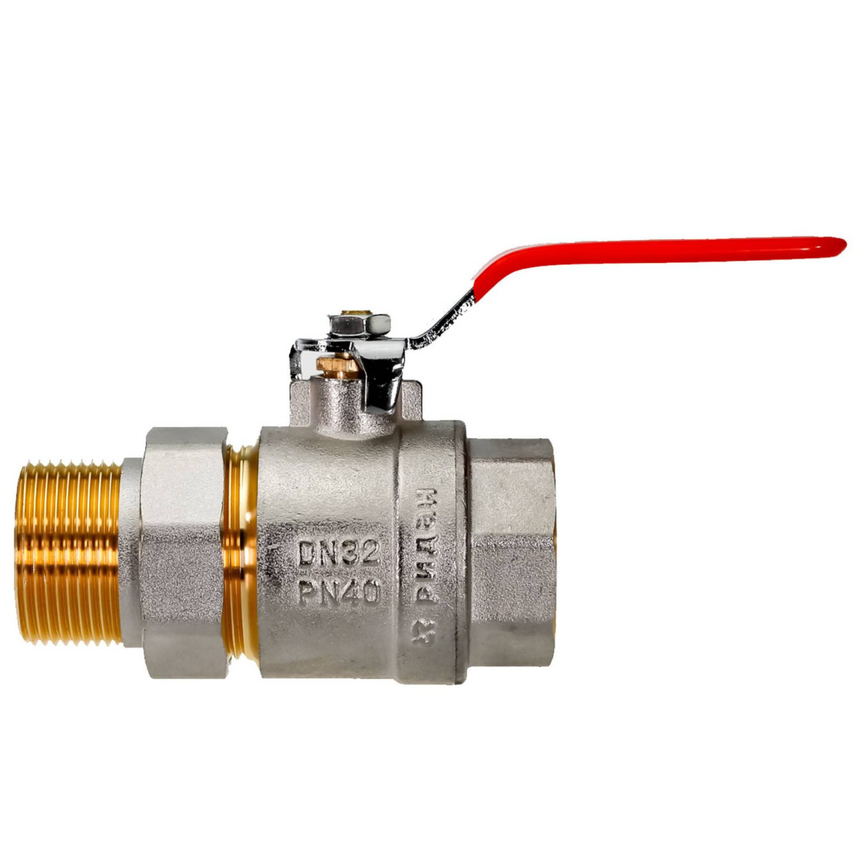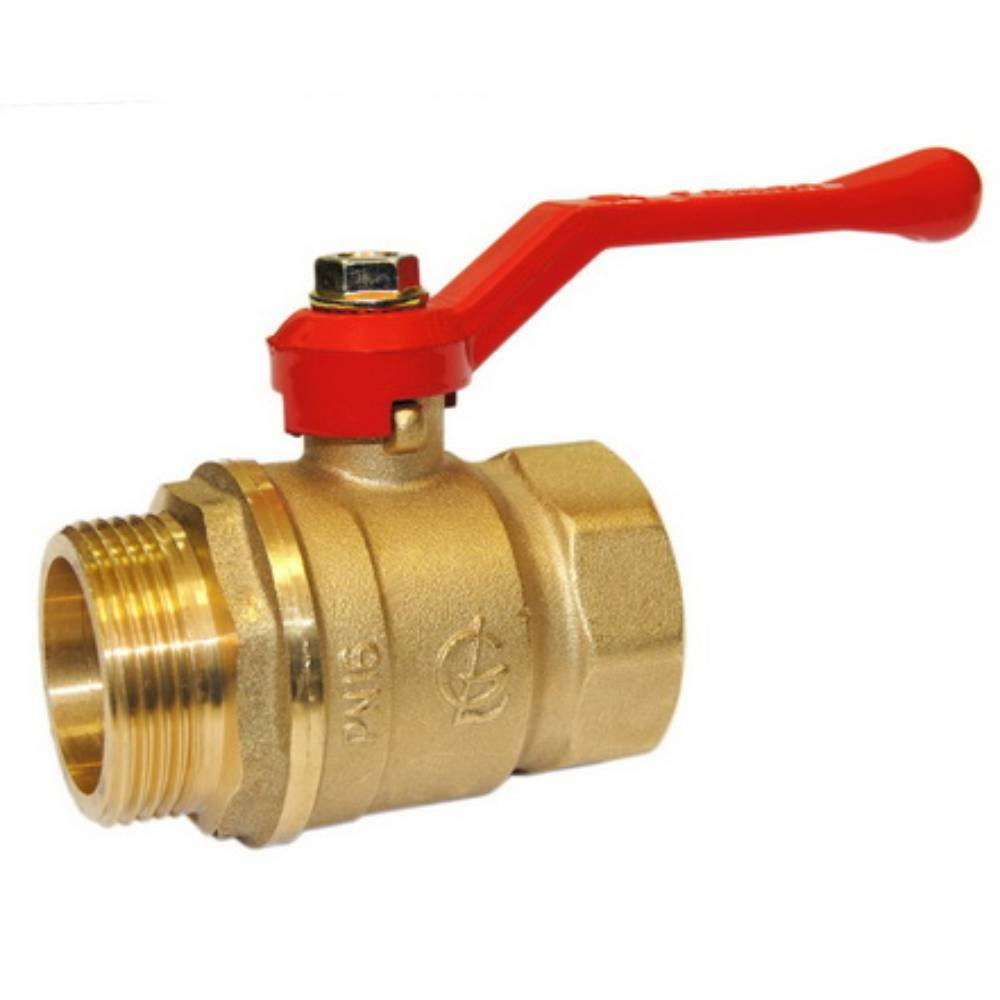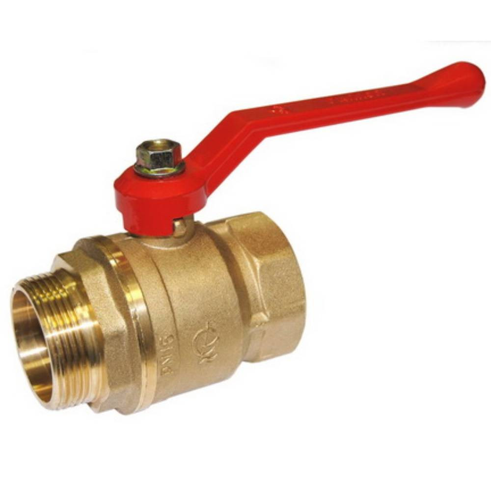 Кран шаровой латунный РИДАН BVR-FR DN32 PN40 п/п, с накидной гайкой и ниппелем, рычаг Ридан