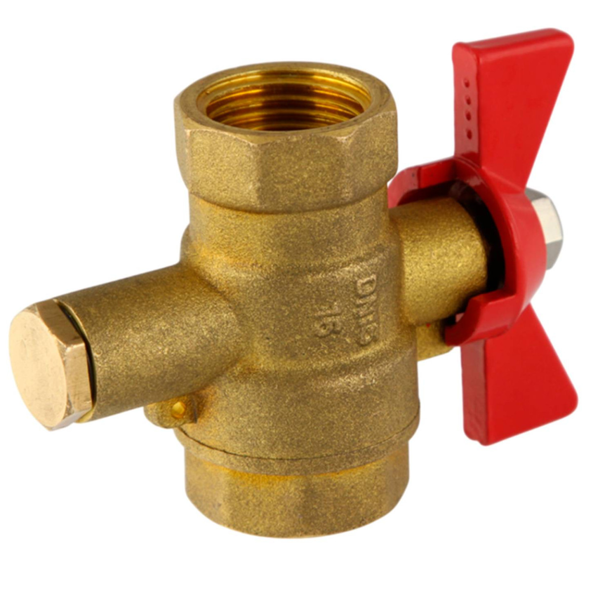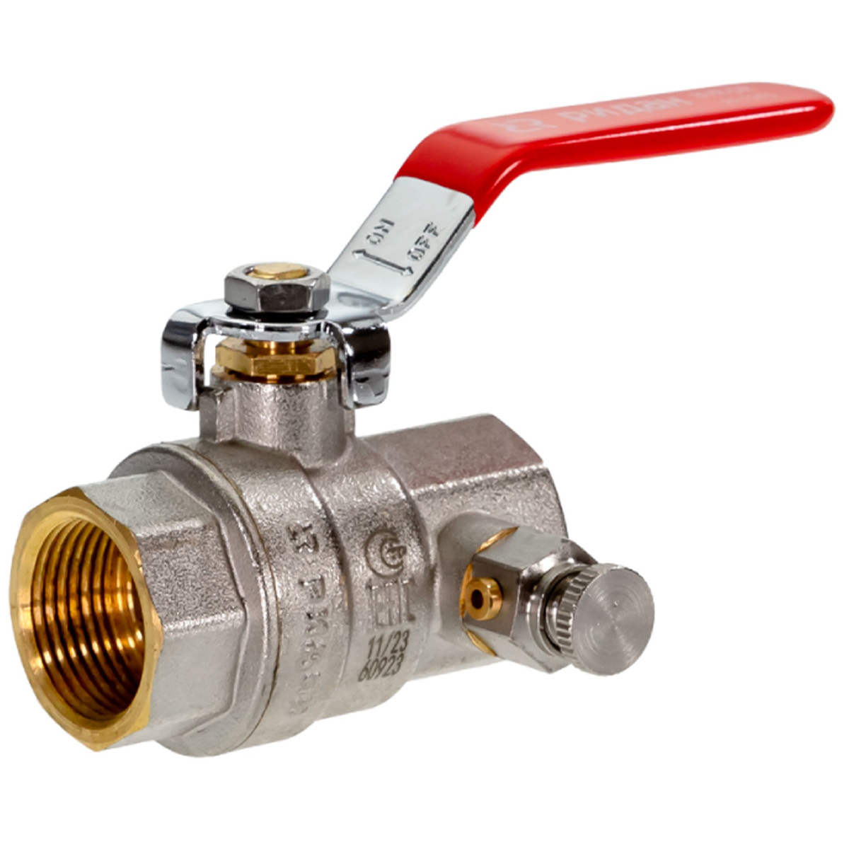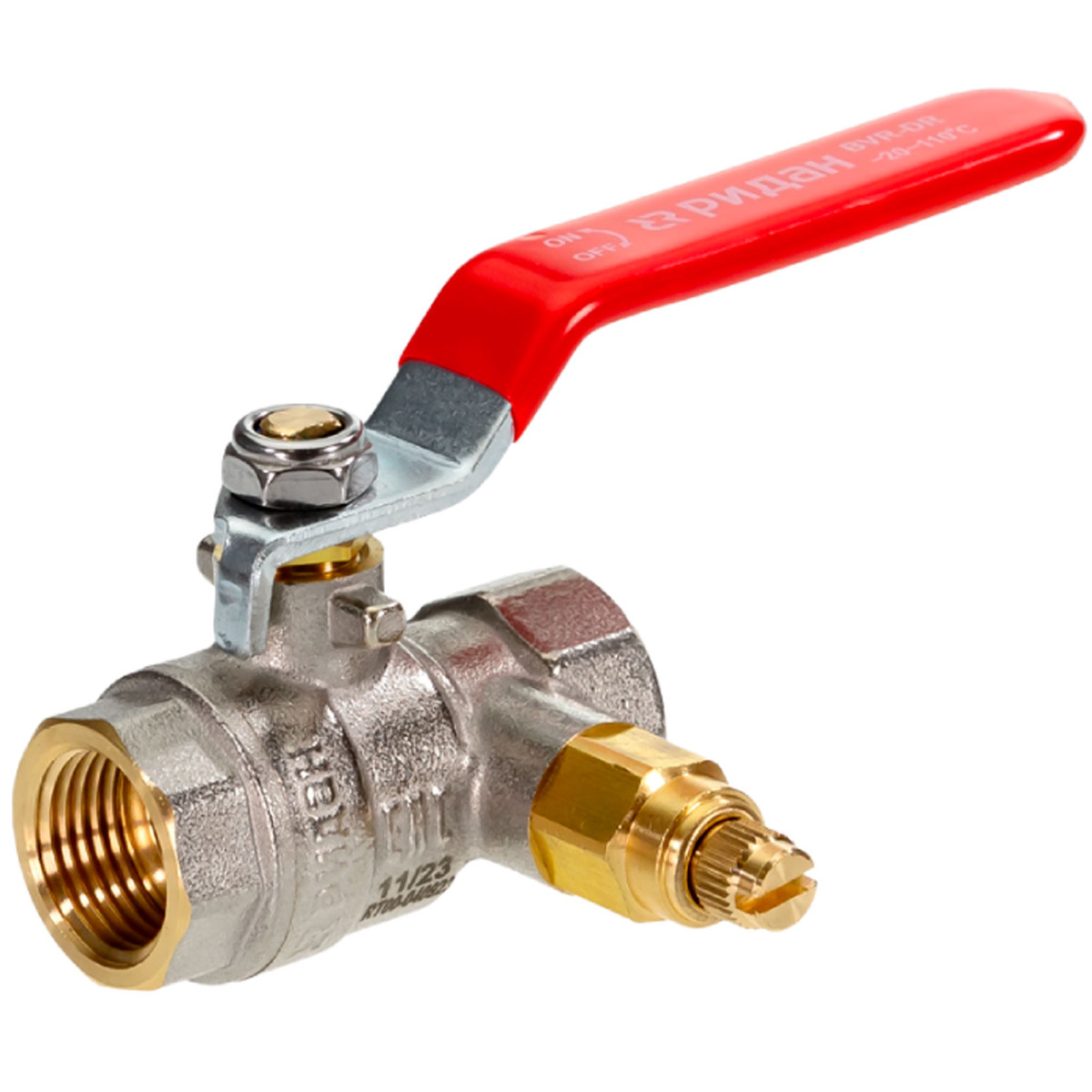 Кран шаровой латунный РИДАН BVR-DR DN32 PN40 с внутренней резьбой и спускным элементом Ридан