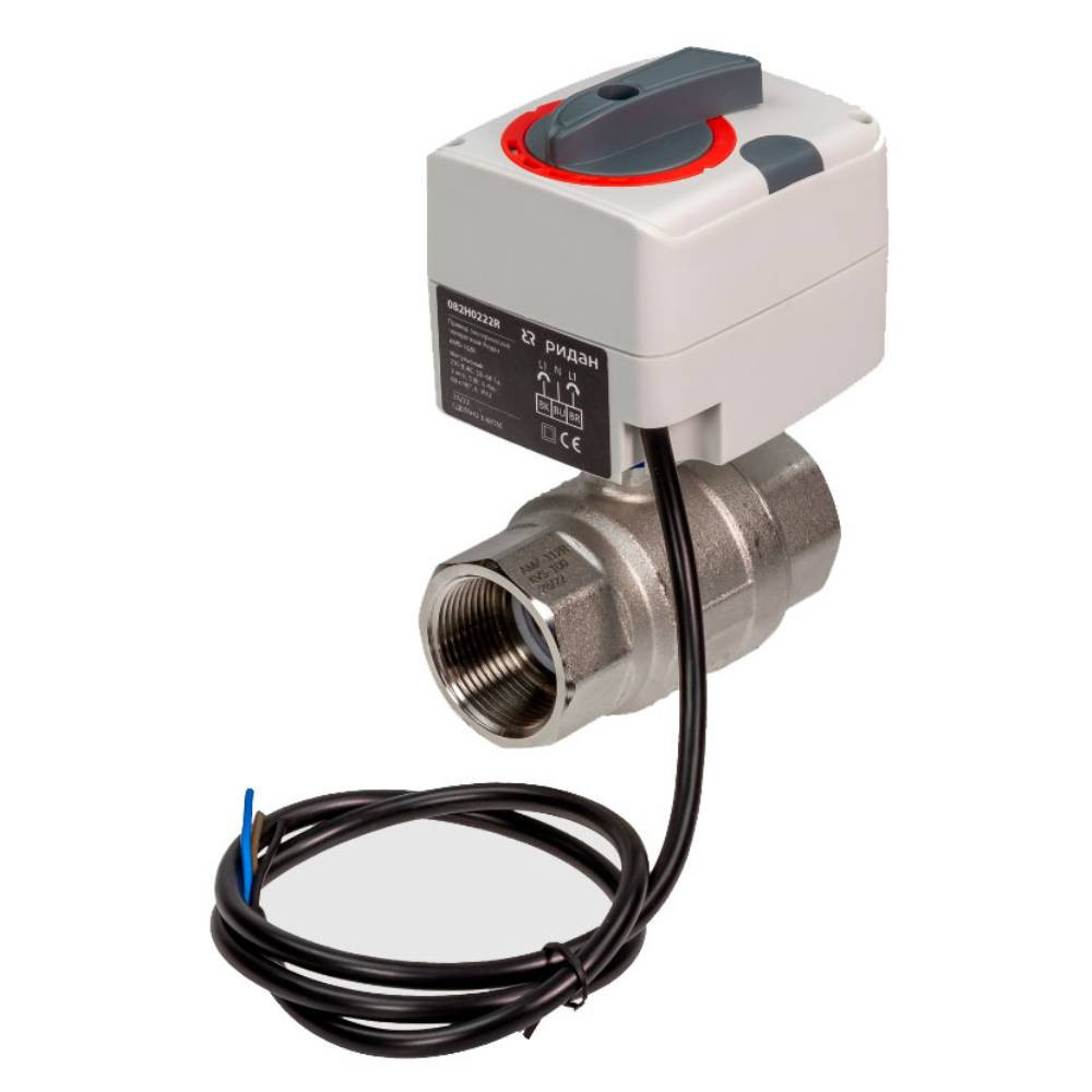 Кран шаровой латунный РИДАН AMZ 112 DN40 PN25 Kvs156 двухпозиционный, с электроприводом Ридан