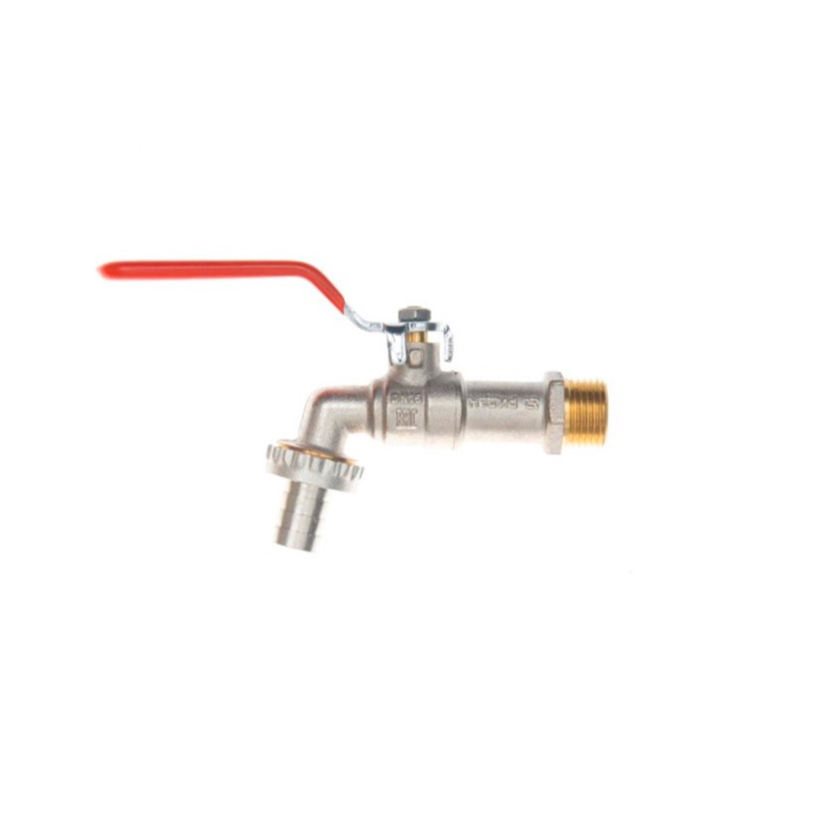 Кран шаровой латунный РИДАН BVR-CR DN25 PN10 c наружной резьбой и насадкой под шланг, рычаг Ридан