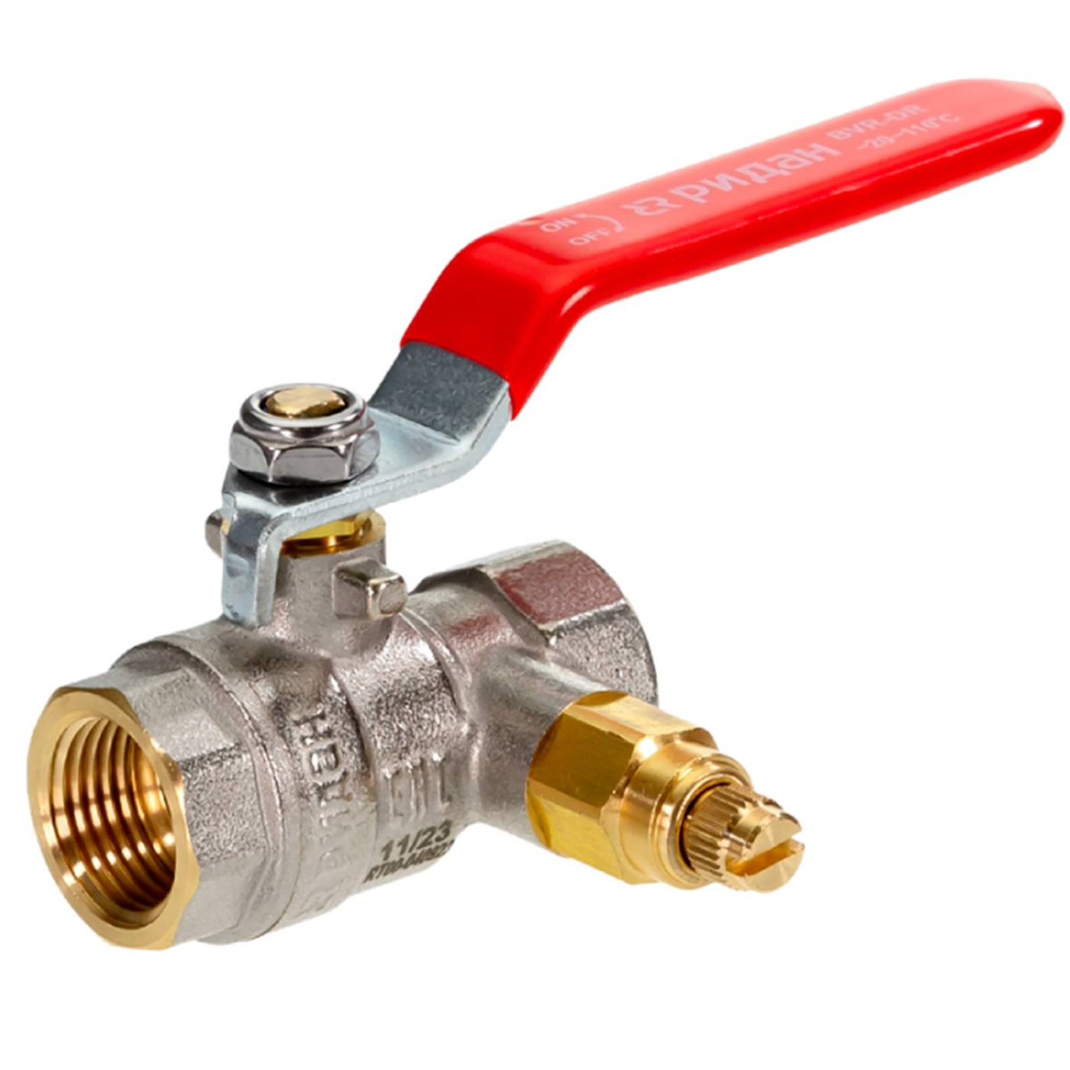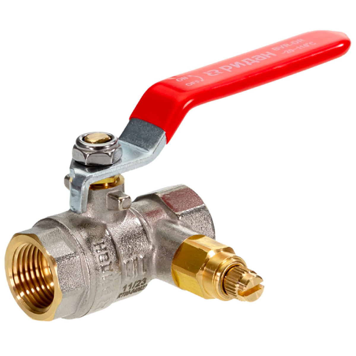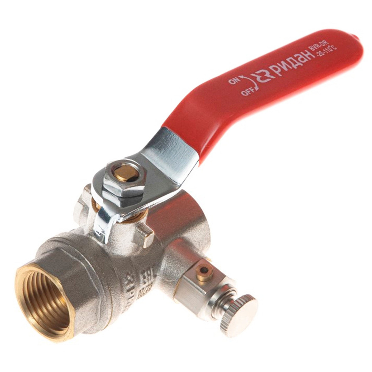 Кран шаровой латунный РИДАН BVR-DR DN20 PN40 с внутренней резьбой и спускным элементом Ридан