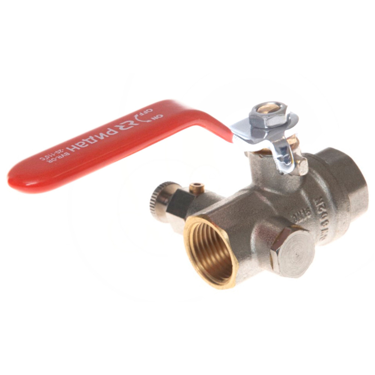 Кран шаровой латунный РИДАН BVR-DR DN25 PN40 с внутренней резьбой и спускным элементом Ридан