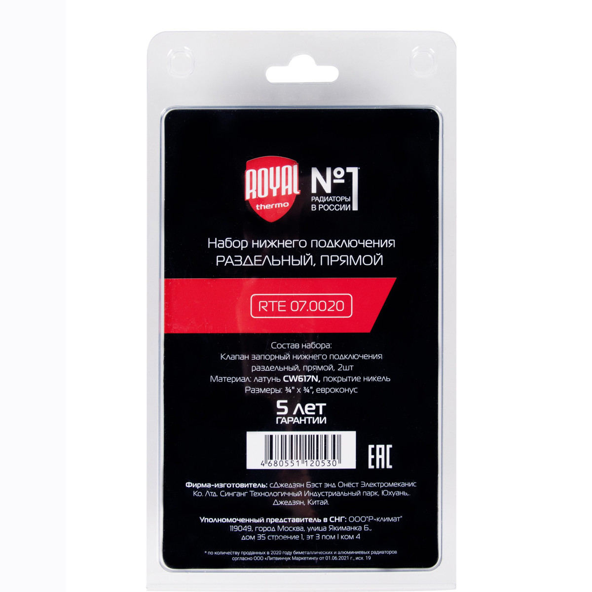 Набор нижнего подключения Royal Thermo прямой раздельный 3/4х3/4ЕК Royal Thermo