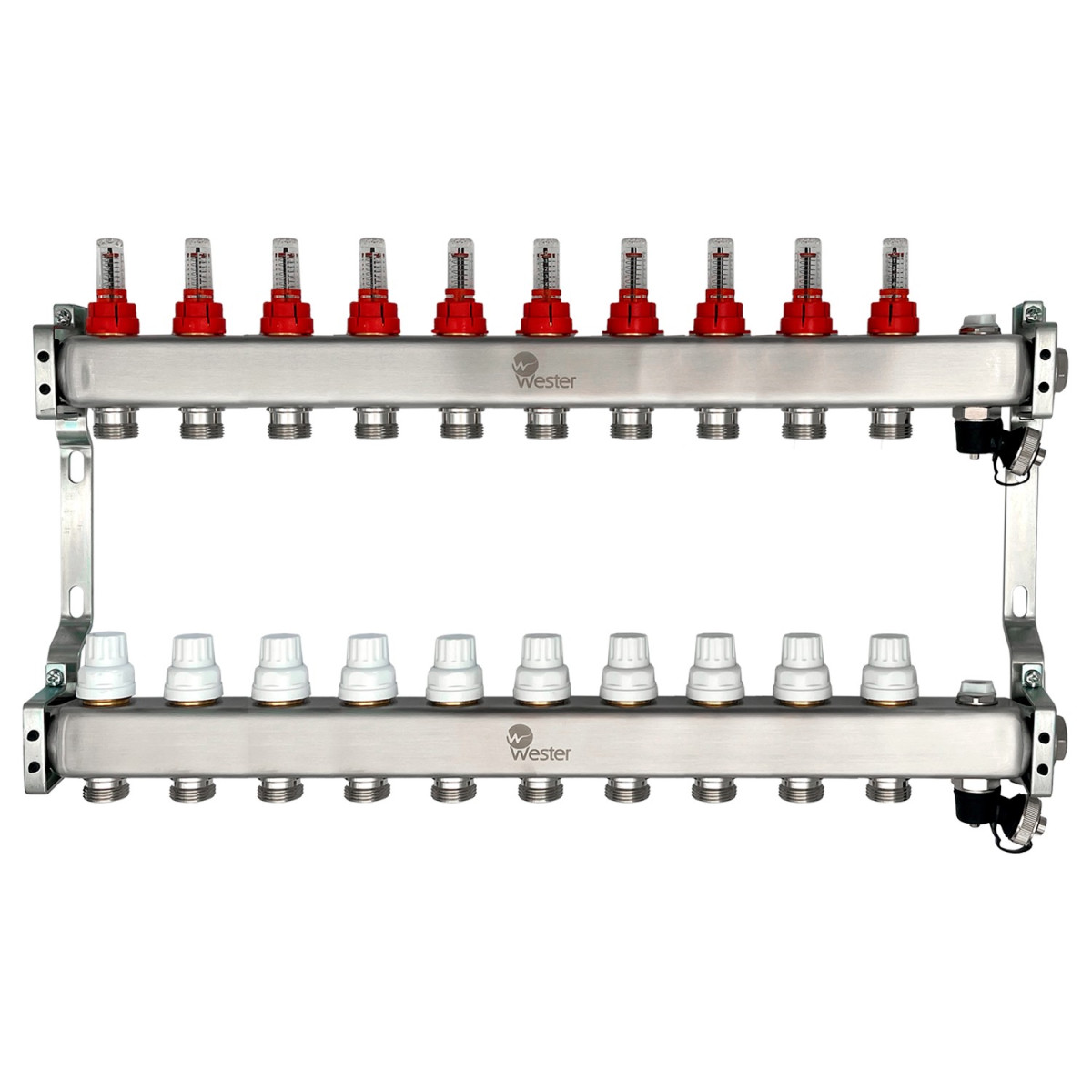 Коллектор Wester нерж. 1"-3/4 в сборе с расходомерами на 10 выходов, MUFS10134
