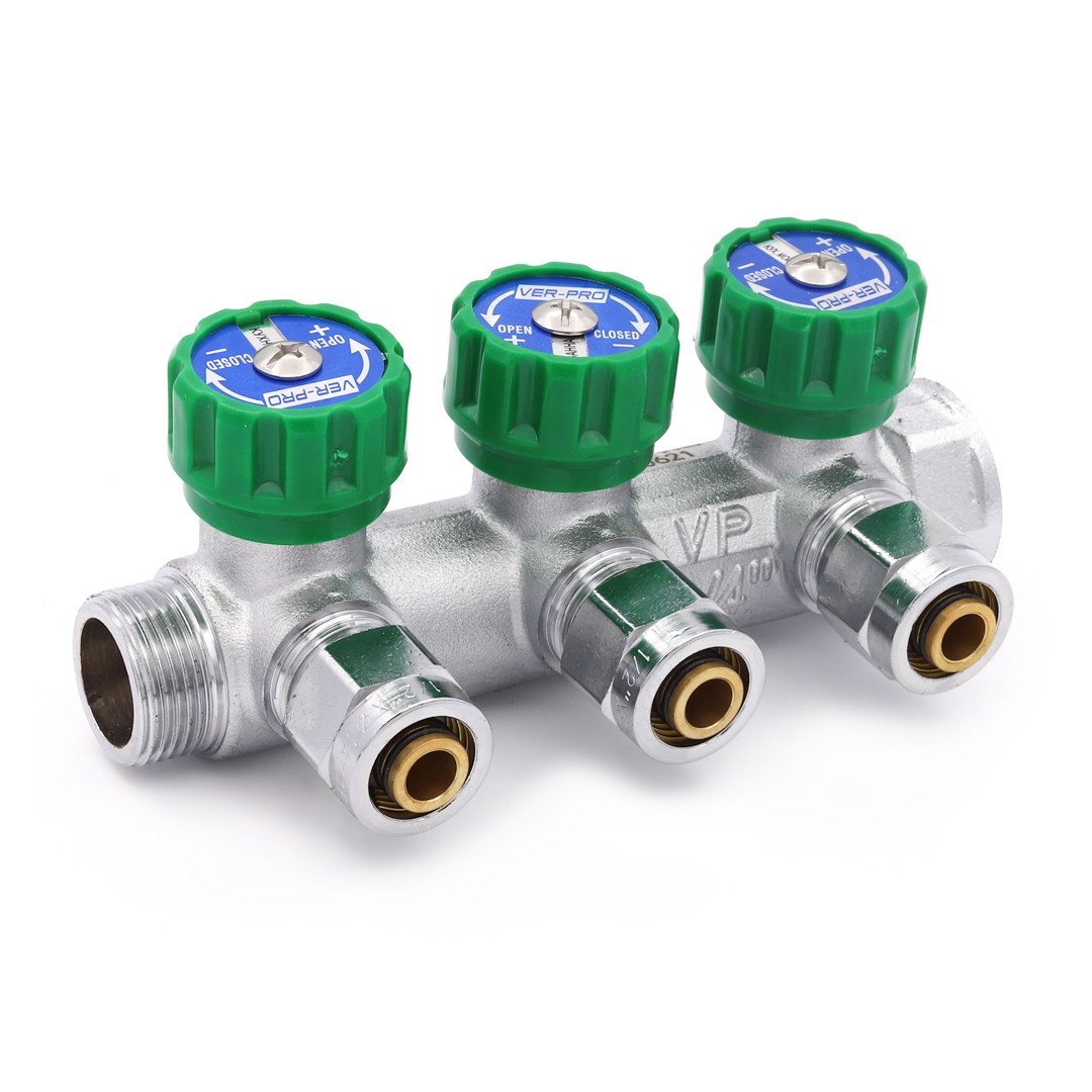 Коллектор VIEIR 3/4-16-3вых с регул. вентилями, еврок. VER-PRO VER403