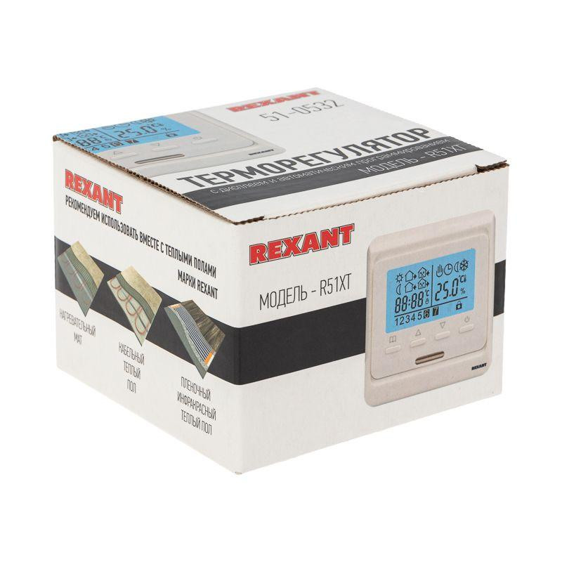 Термостат программируемый R51XT (HW-500; RTC 51.716; ST-16; ETT-1) 3.6кВт 16А для теплых полов датчик пола; датчик воздуха бел. Rexant 51-0532 Rexant