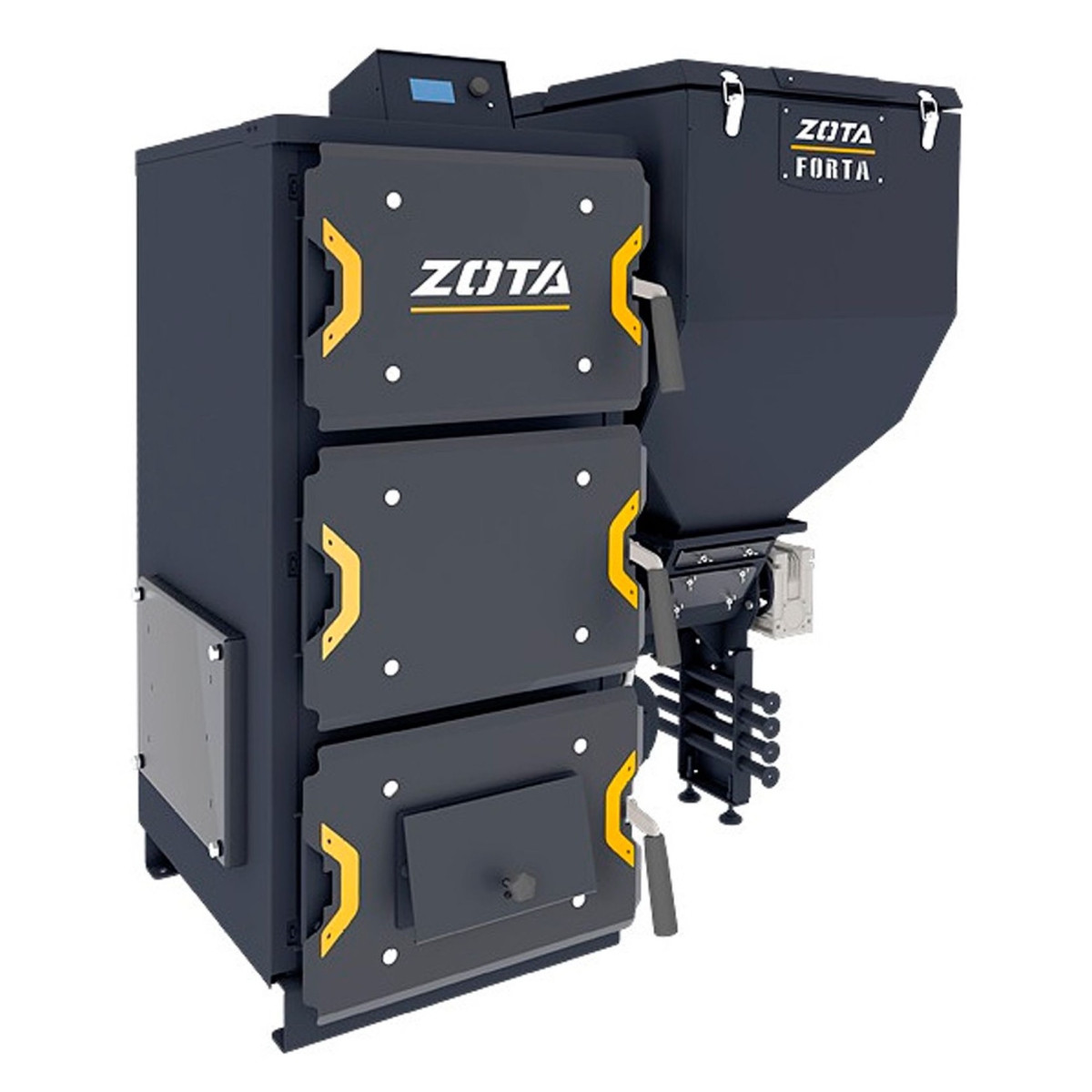 Котел угольный ZOTA Forta 25 кВт (DM) с автоматической подачей топлива (котёл + бункер c мех.под.) Zota