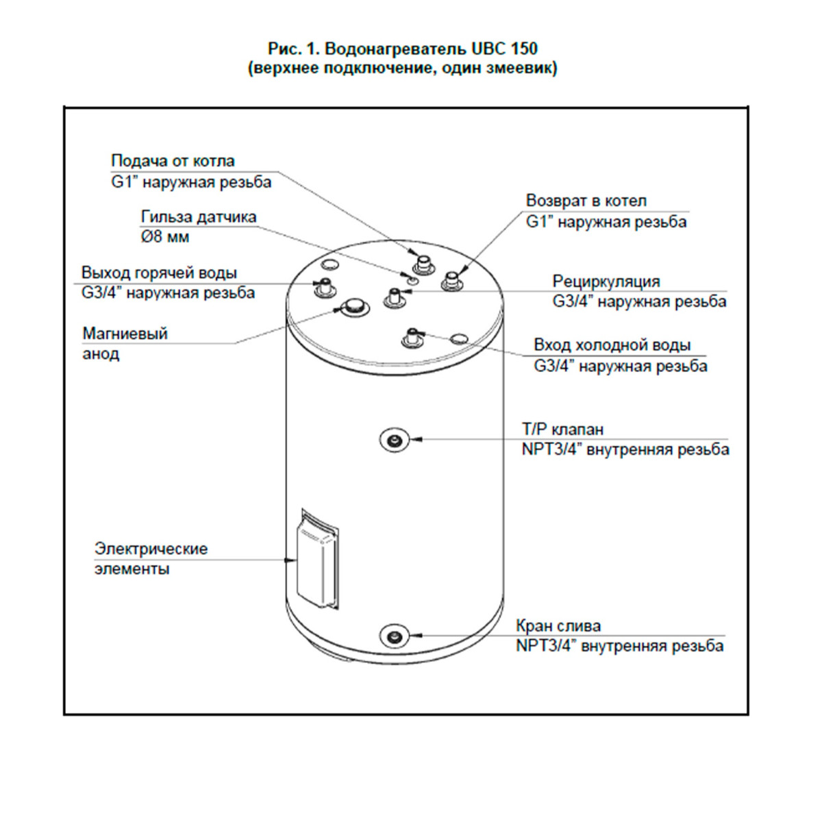 Бойлер косвенного нагрева BAXI UBC 150 напольный, одиночный змеевик, с верхним подключением Baxi