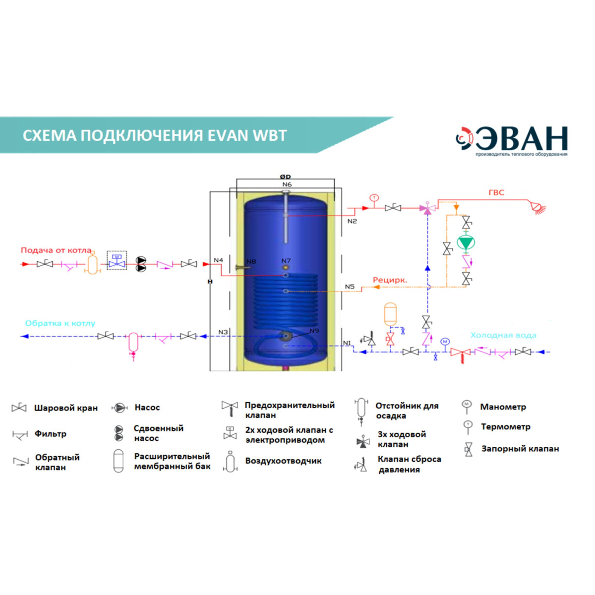 Бойлер косвенного нагрева ЭВАН WBT-HT-300 с одним змеевиком Эван