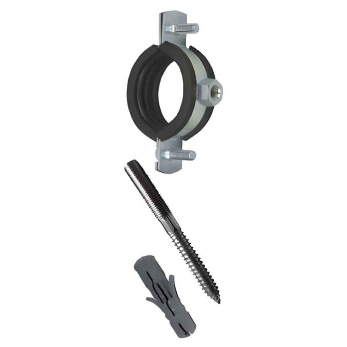 Хомут Uni-Fitt 2 1/2" (75-80 мм) с резиновым уплотнителем, шпилькой и дюбелем