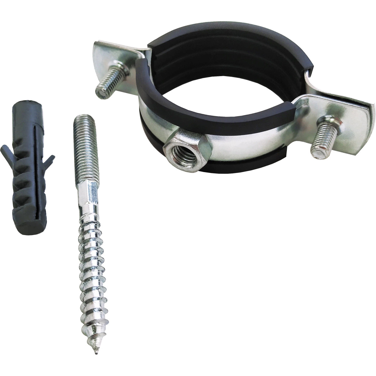 Хомут оцинк.с резин. уплотнением (РМ)(в компл.шпилька М8*80 и дюбель) (75-80 мм) 2 1/2" VALFEX (70)