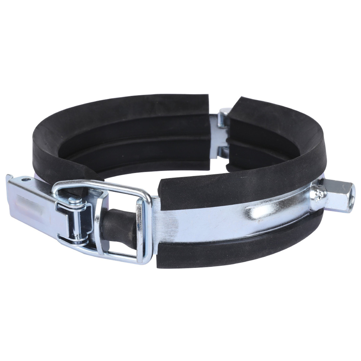 Хомуты RAUPIANO Plus, предназначенные для неподвижного соединения, которые прочно удерживают закрепляемую трубу в определённых точках и предотвращают её нежелательные движения. Хомут опорный применяется для монтажа канализационной системы RAUPIANO PLUS. Оснащён резиновым вкладышем, изготавливается из оцинкованной ленточной стали. Также в хомуте имеется специальная проставка согласно DIN 4109 проставка находится в замке опорного хомута и предотвращает плотное примыкание крепёжного элемента к трубе, за счёт чего обеспечивается снижение акустической связи. Опорный хомут позволяет зафиксировать трубу с диаметром 110 мм на стене.