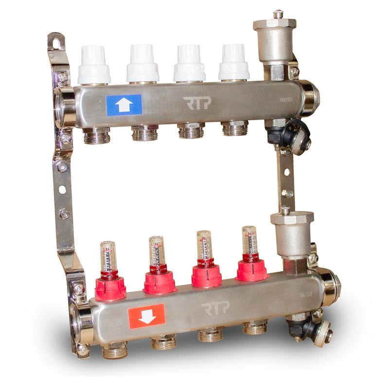 Группа коллекторная с расходомерами (евроконус 3/4дюйм) нерж. сталь SUS 304 1дюйм х4 выхода RTP 42496