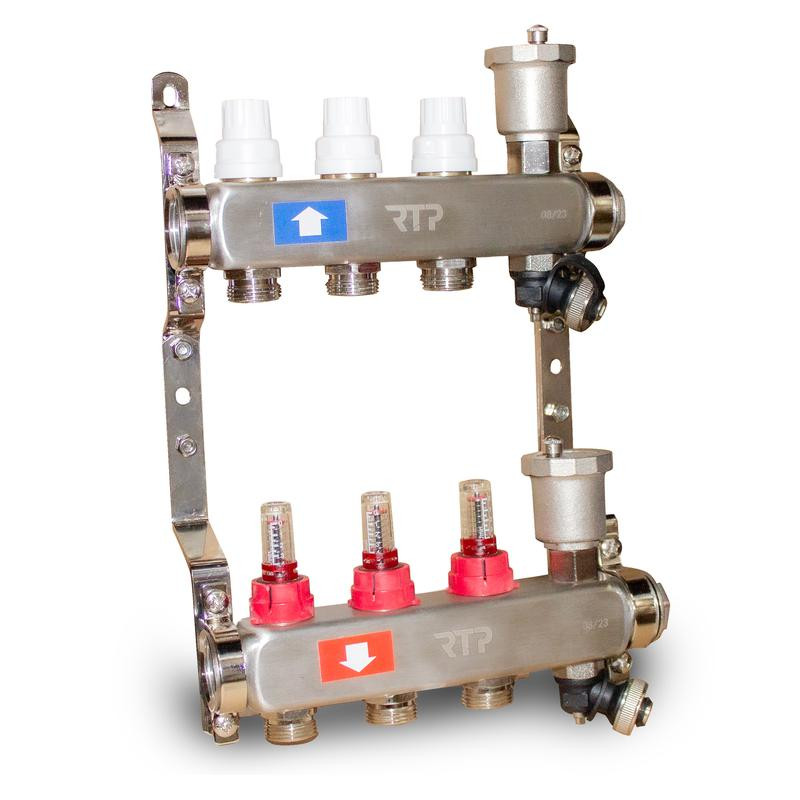 Группа коллекторная с расходомерами (евроконус 3/4дюйм) нерж. сталь SUS 304 1дюйм х3 выхода RTP 42494