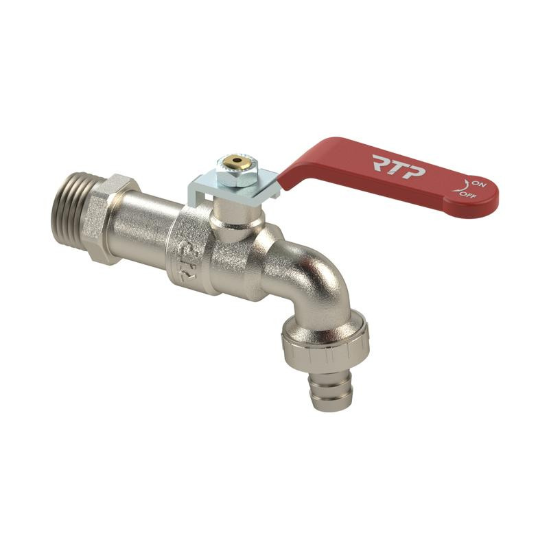 Кран шаровой водоразборный ручка рычаг латунь наружн./наружн. резьба 1/2х1/2дюйм-14 никель RTP 34659
