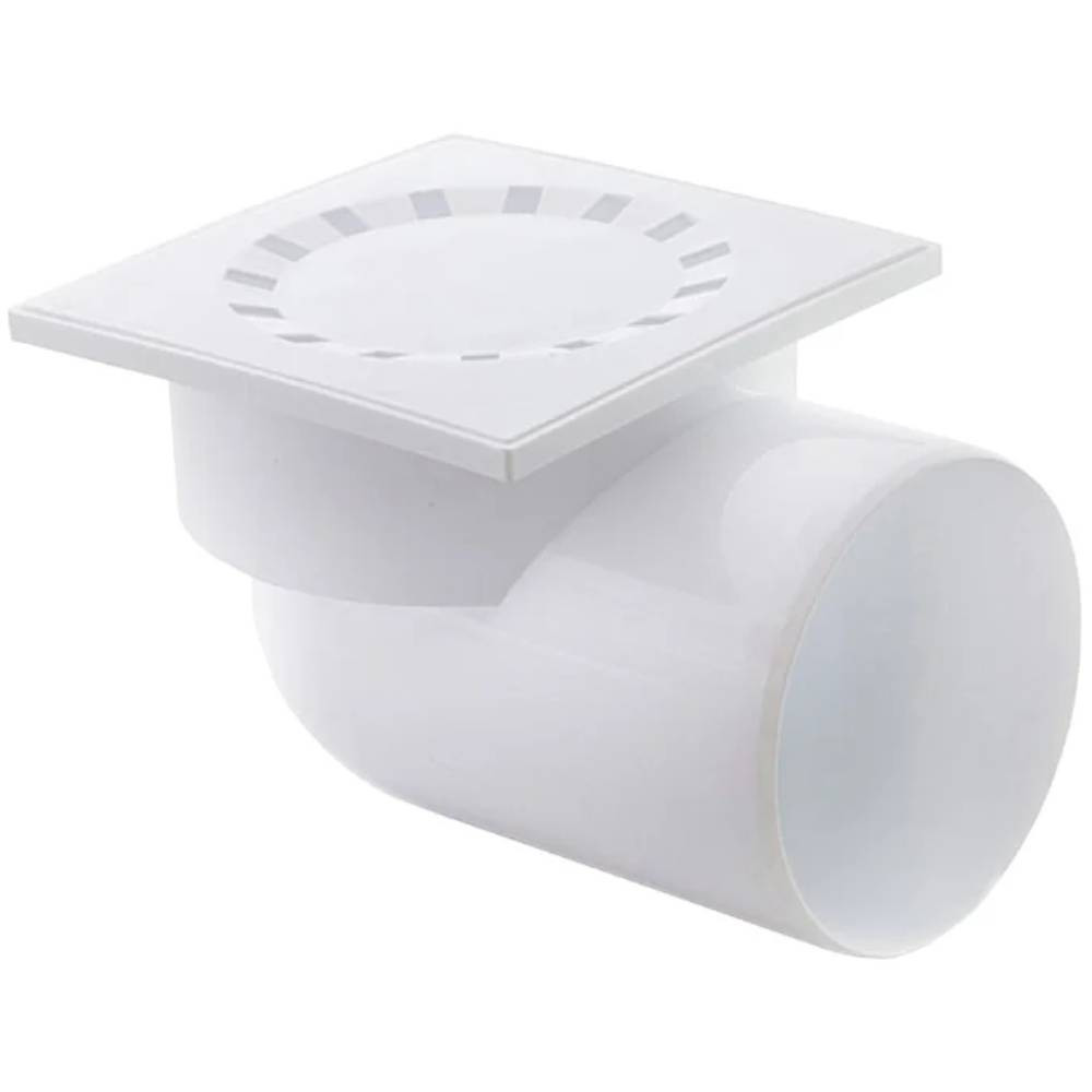 Трап Политэк Пайп 110 горизонтальный с пластиковой решеткой 150х150мм