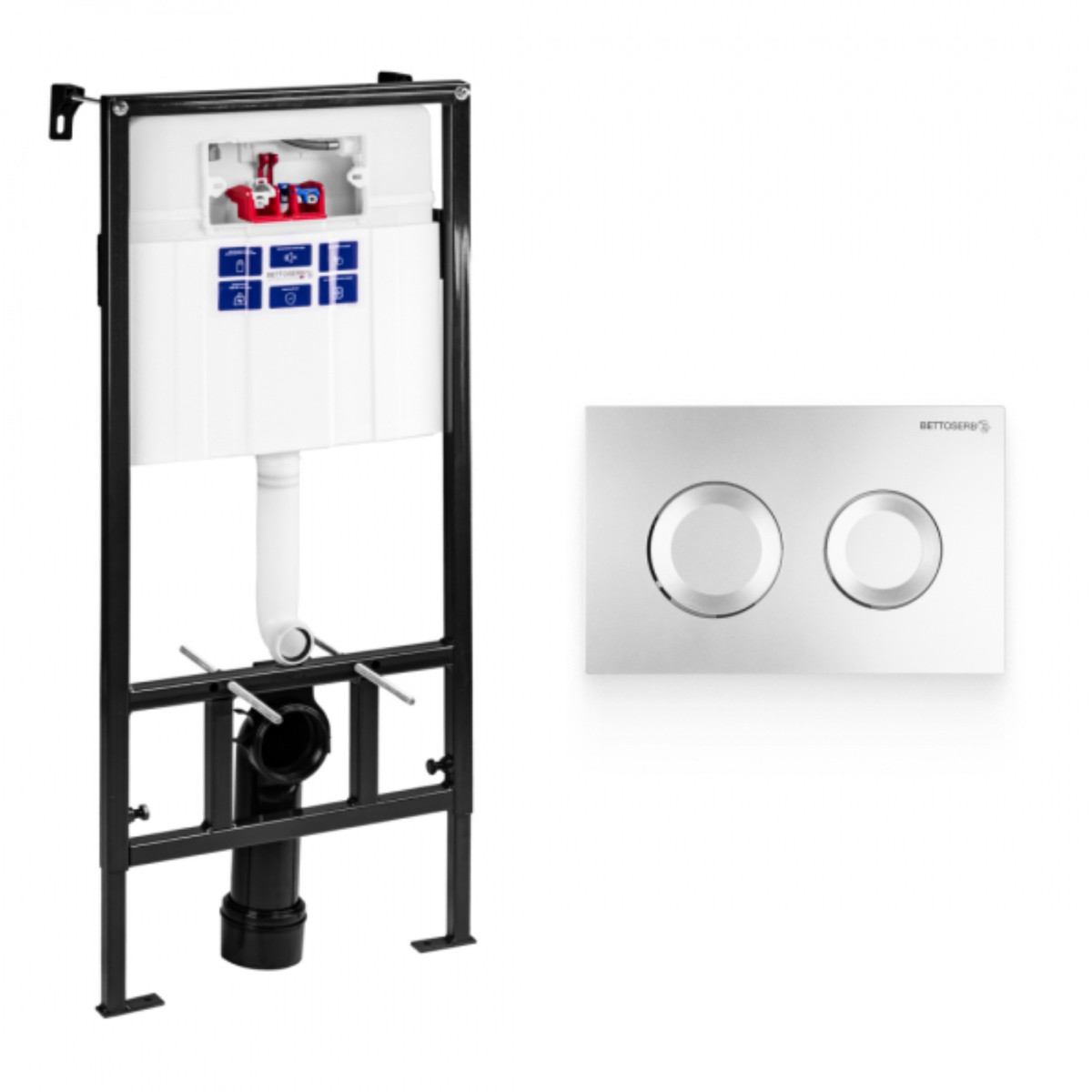 Инсталляция для унитаза BETTOSERB sava free standing, клавиша смыва twin хром матовый