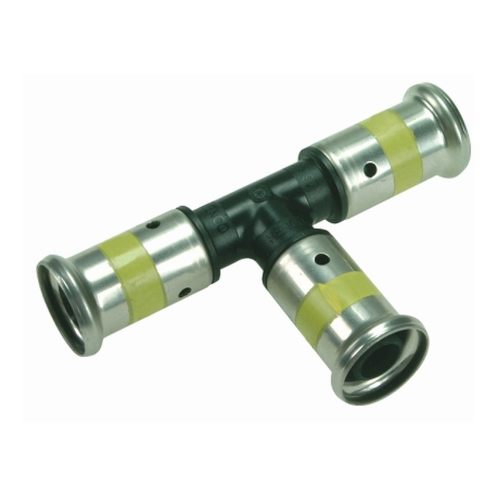 Тройник HENCO переходный уменьшенный в центре, ПВДФ пресс (газ), 32x26x32