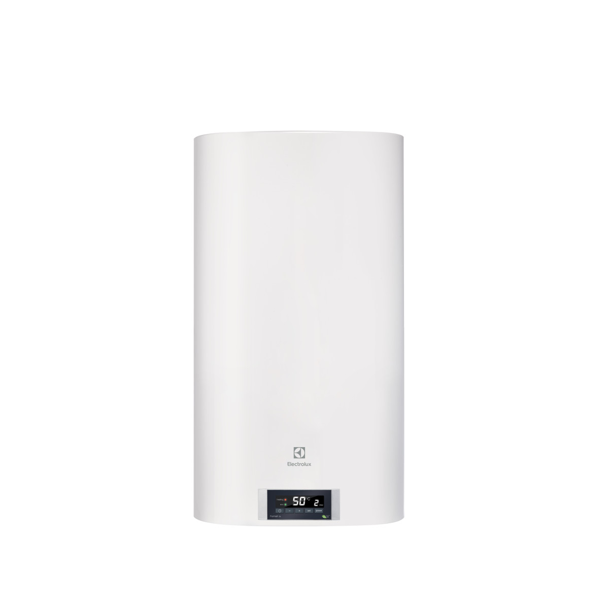 На лицевой панели водонагревателя расположена удобная электронная панель управления, с помощью которой можно задать нужную температуру нагрева воды в диапазоне от 30 до 75°С. При выборе на панели управления функции экономного режима (положение «ЕCO»), вода будет нагреваться до температуры 55°С. При такой температуре повышается рабочий ресурс ТЭНа, происходит обеззараживание воды и практически не образуется накипь.