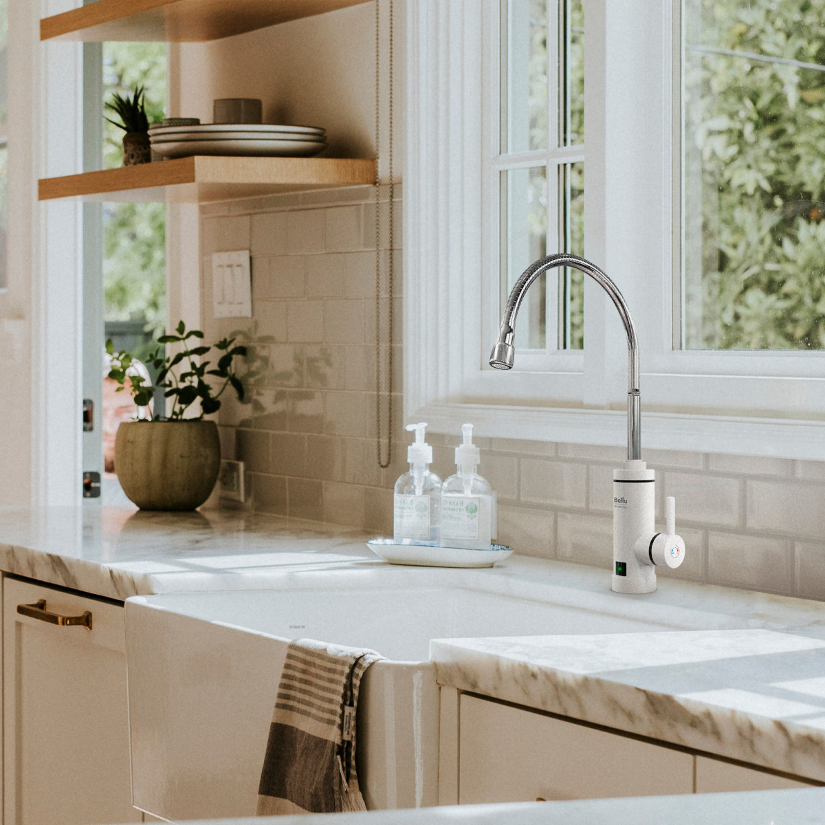 Для монтажа проточного водонагревателя StreamTap не требуются специальные навыки, профессиональные инструменты или дополнительные запчасти. Достаточно установить водонагреватель на раковину вместо обычного смесителя, подключить устройство к розетке и пользоваться горячей водой, когда потребуется.
