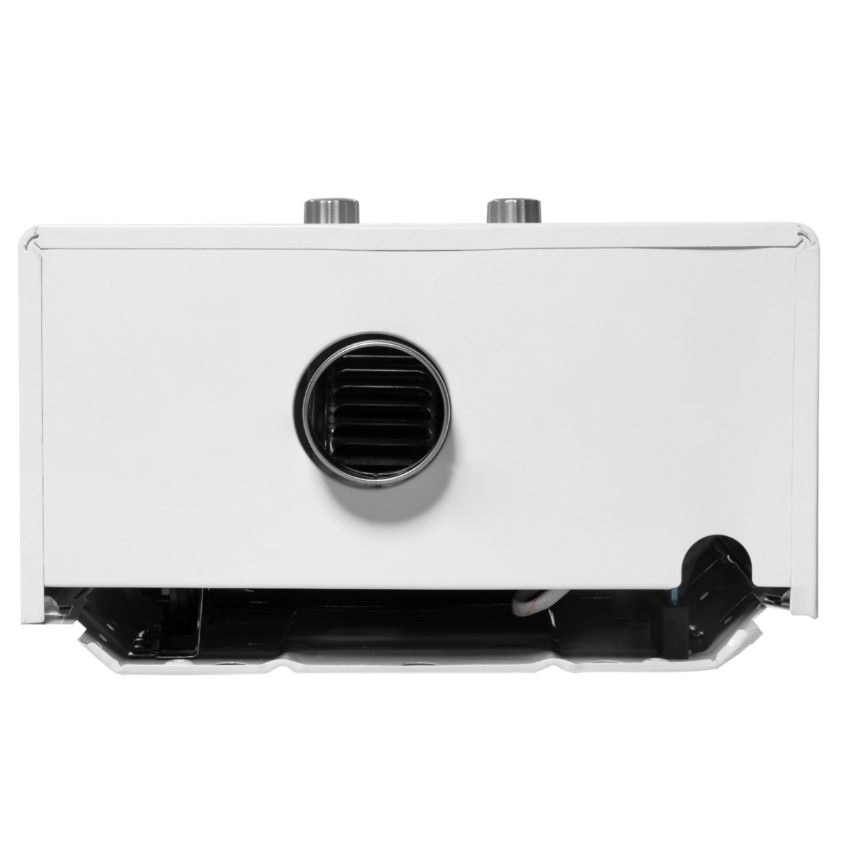 Классический белый глянцевый цвет и современный дизайн позволят прибору органично вписаться в интерьерный стиль любого помещения, делая его естественной частью как кухонного пространства, так и в ванной комнаты.