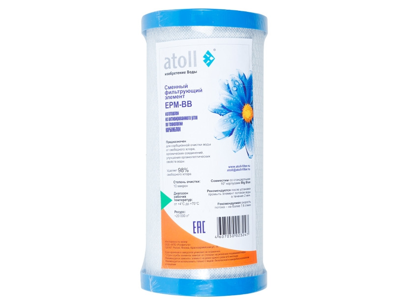 Прессованный гранулированный активированный уголь Atoll, 10мк, 10" Atoll EPM-BB