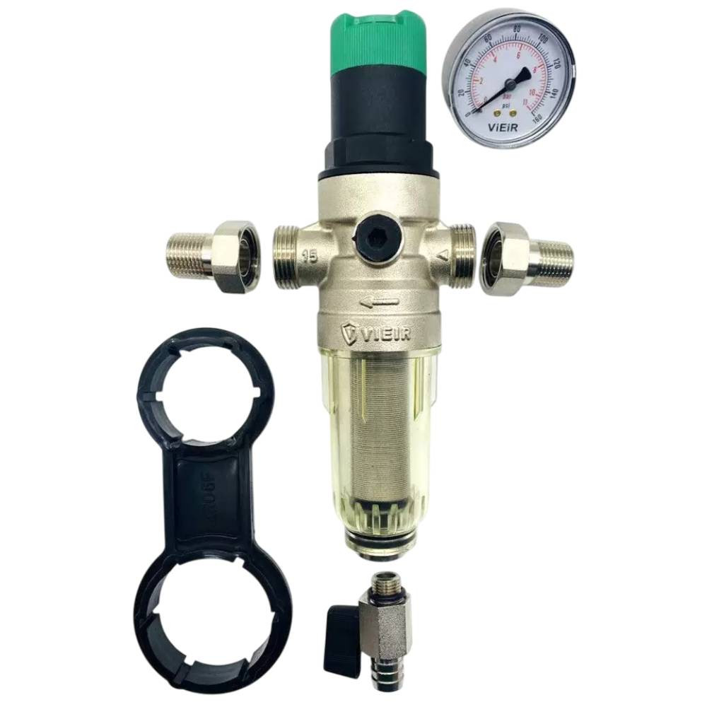 Фильтр VIEIR с регулятором давления и манометром 3/4" для гор. воды (10/1)