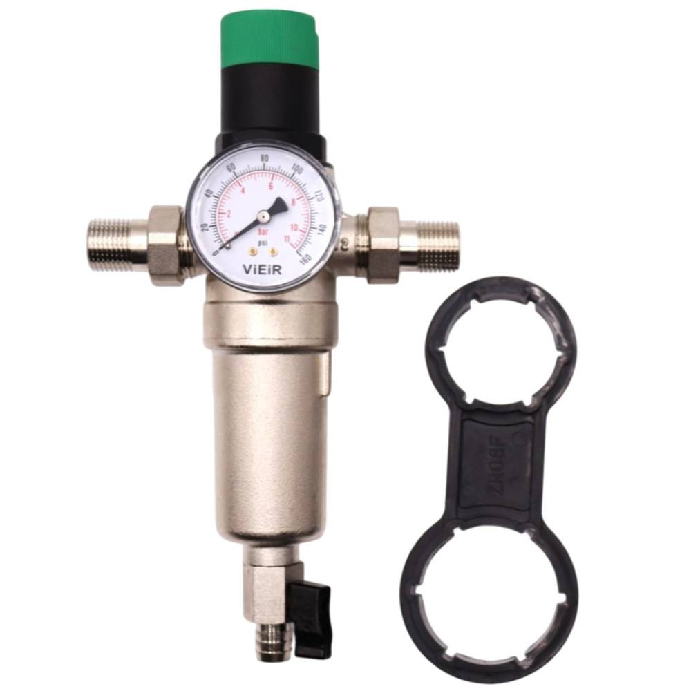 Фильтр VIEIR с регулятором давления и манометром 1/2" для холод. воды НИКЕЛЬ (10/1)