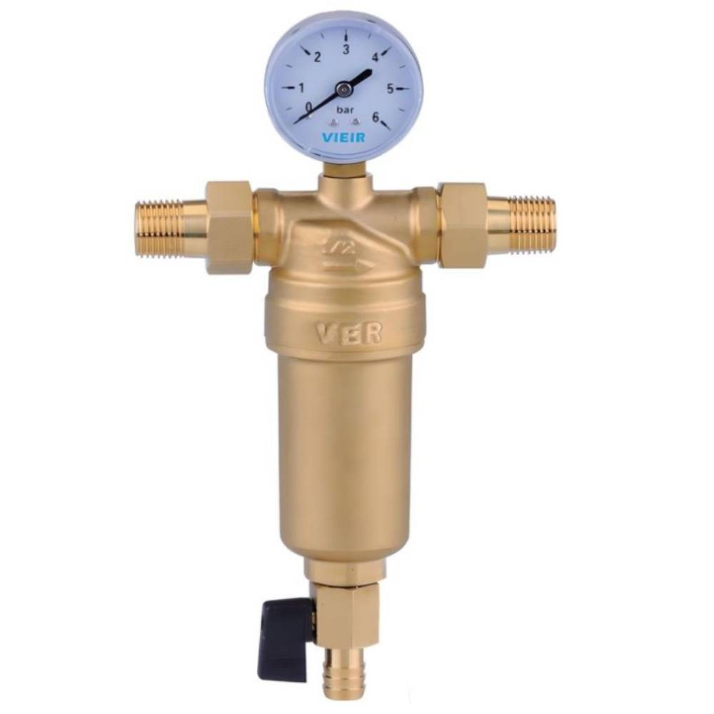 Фильтр VIEIR с манометром 1/2" для горячей воды (15/1)