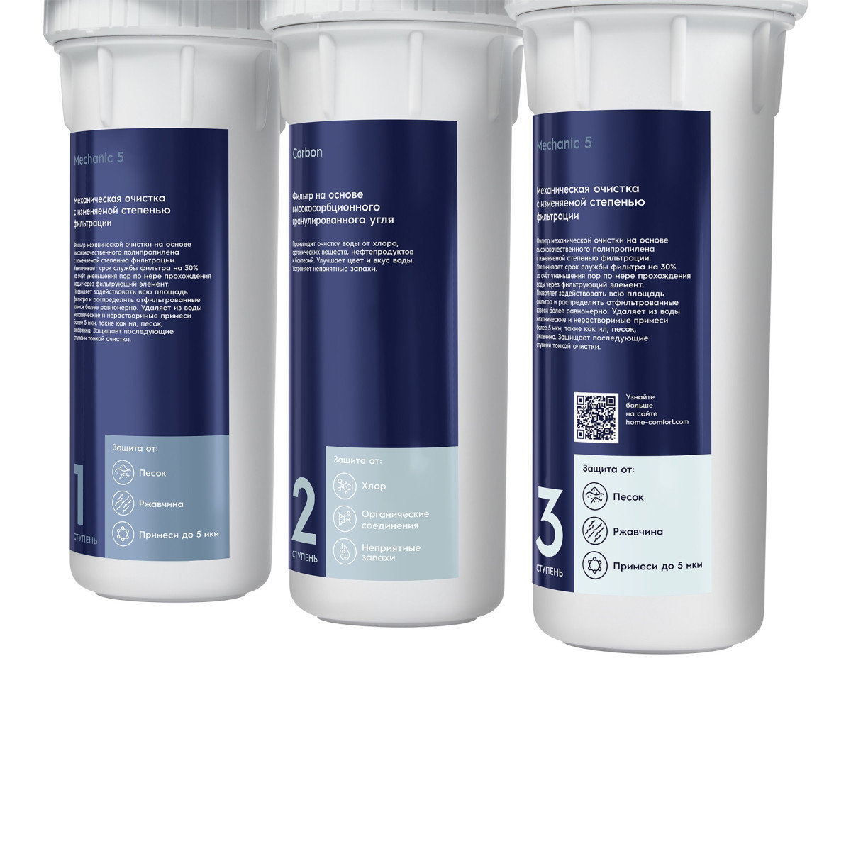 Полностью удаляет механические примеси, хлор, органические соединения, нефтепродукты, бактерии, вирусы, токсины и аллергены. Удаляет соли жесткости препятствуя образованию накипи на нагревательных приборах. Делает водопроводную воду пригодной для питья без кипячения.