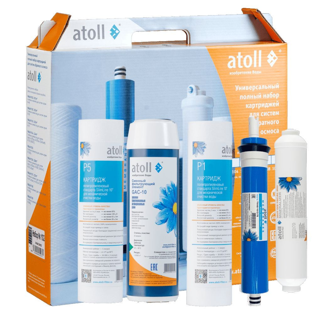 Набор предназначен для использования входящих в его комплект картриджей для периодической замены использованных элементов в системах обратного осмоса торговой марки atoll. Все сменные фильтрующие элементы, входящие в этот набор, имеют стандартные типоразмеры, и могут быть использованы для большинства фильтров других производителей.