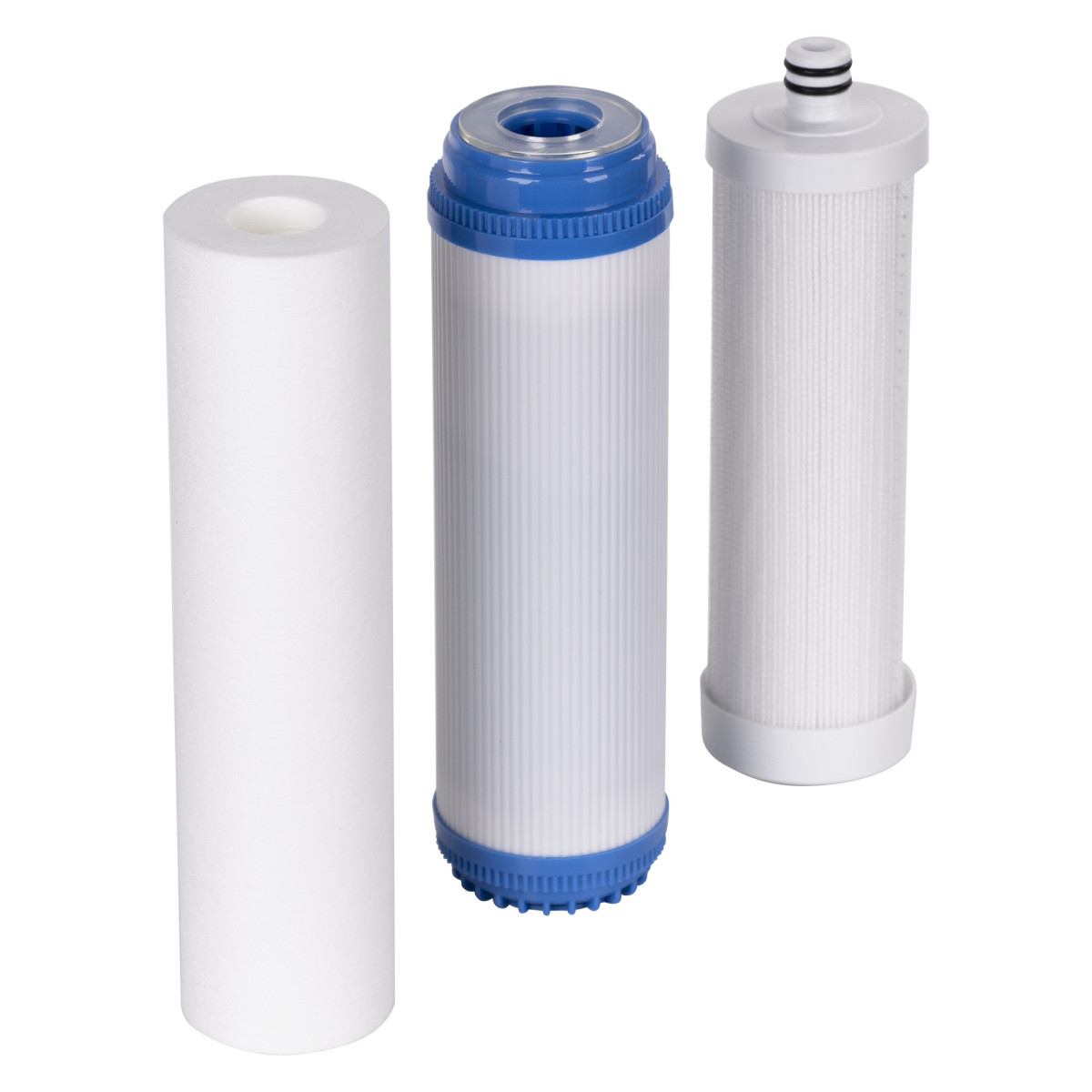 - Комплектность 3 фильтр-картриджа: Механическая очистка, фильтр на основе ионообменной смолы питьевого класса, мультикомпонентный фильтр на основе полипропилена и карбонблока