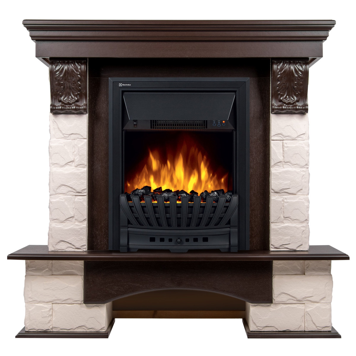 Портал Firelight Forte Classic камень белый, шпон темный дуб