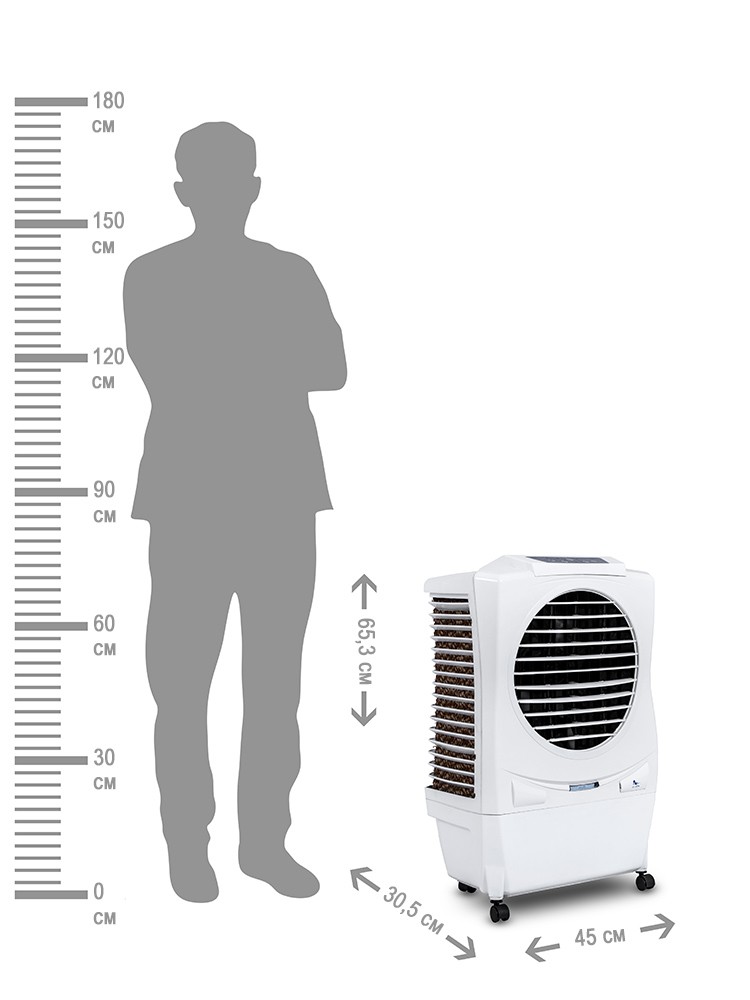 Принцип работы воздухоохладителя Как известно, испарение воды происходит с поглощением тепла из окружающего пространства. Это естественный (природный) процесс, основанный на законах физики. Соответственно, в воздухоохладителях происходит охлаждение воздуха (окружающей среды) за счёт испарения воды. Чем выше температура в помещении, тем интенсивнее испаряется вода и быстрее охлаждается воздух в этом помещении.