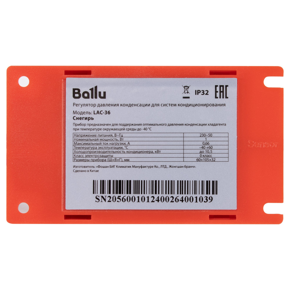 - регулятор давления конденсации (регулятор скорости вращения вентилятора) LAC-36