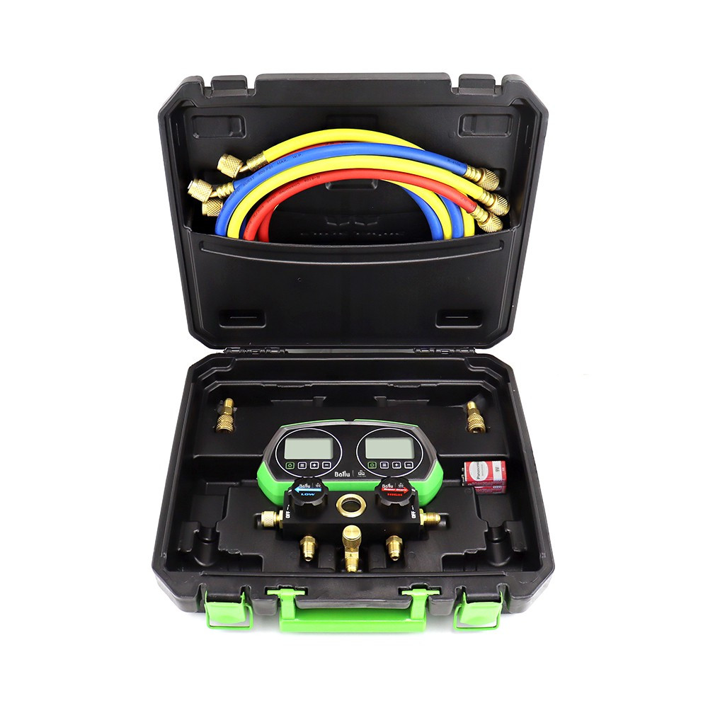 Станция манометрическая электронная 2-х вентильная ST-B268D, используется для осуществления точного измерения давления внутри замкнутого контура трубопровода систем кондиционирования воздуха, холодильных установок. Предустановлено 90 видов хладагентов для измерения.