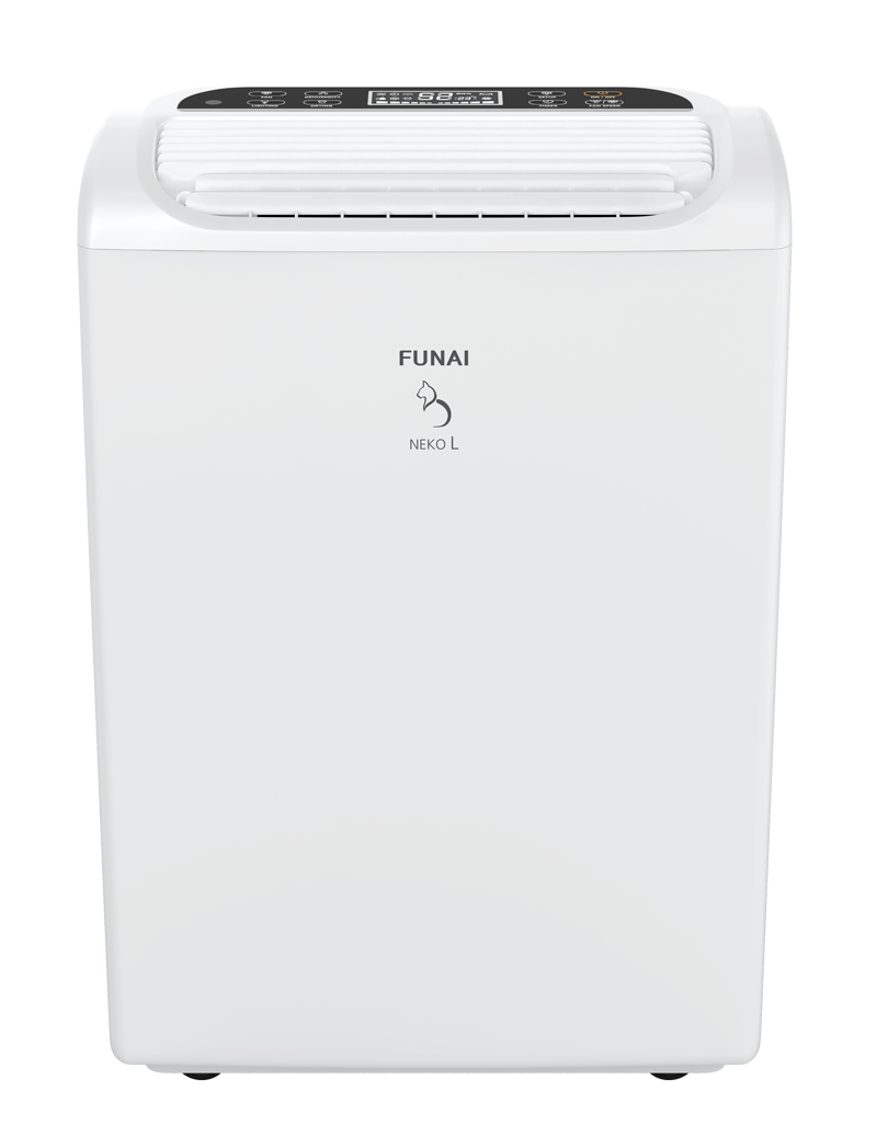 Модели NEKO L с производительностью от 22 до 26 литров в день, имеют функцию сушки одежды, что позволяет их использовать в небольших прачечных, частных банях и саунах. Все модели осушителей FUNAI оснащены традиционными функциями: таймером 1–24 часа, системой настройки скорости обдува, интеллектуальным управлением уровнем влажности воздуха.