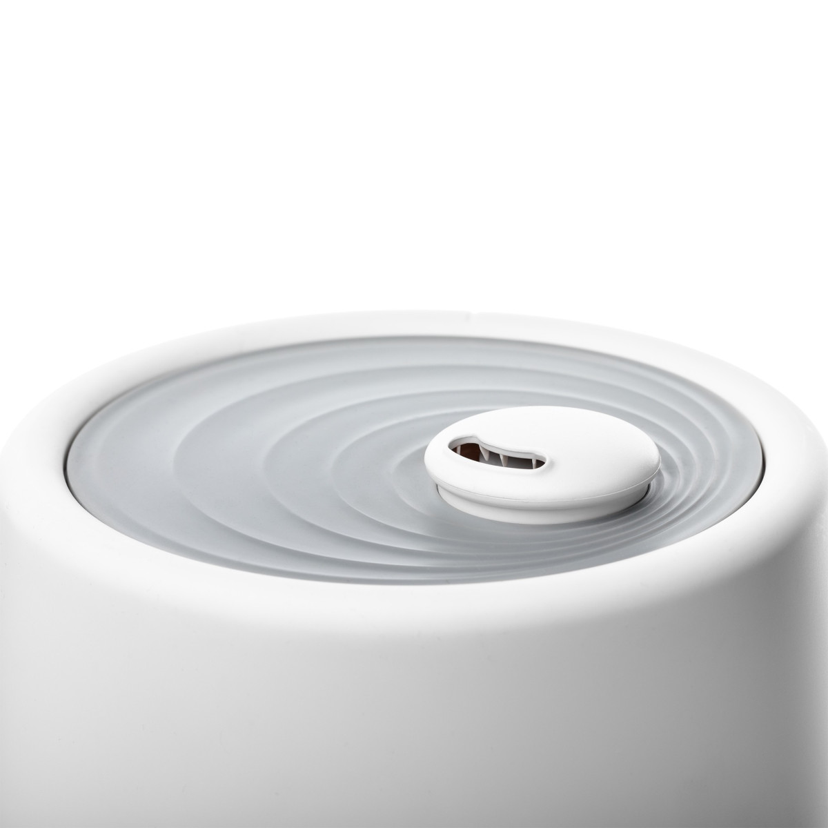 Установите индивидуальную интенсивность испарения для каждого помещения с помощью механического регулятора одним плавным движением. Верхний залив воды позволяет добавлять нужное количество жидкости прямо во время работы, достаточно просто открыть крышку. Несколько капель аромамасла, добавленные непосредственно в бак с водой, преобразуют устройство в аромадиффузор. Фильтр-картридж, смягчающий воду, избавит её от излишков солей, благодаря чему на мебели и окружающих предметах не останется белого налёта после использования устройства.