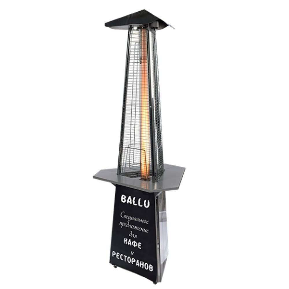 Столик разработан инженерами Ballu с учётом всех особенностей использования уличных обогревателей на летних верандах ресторанов и в уличных кафе.