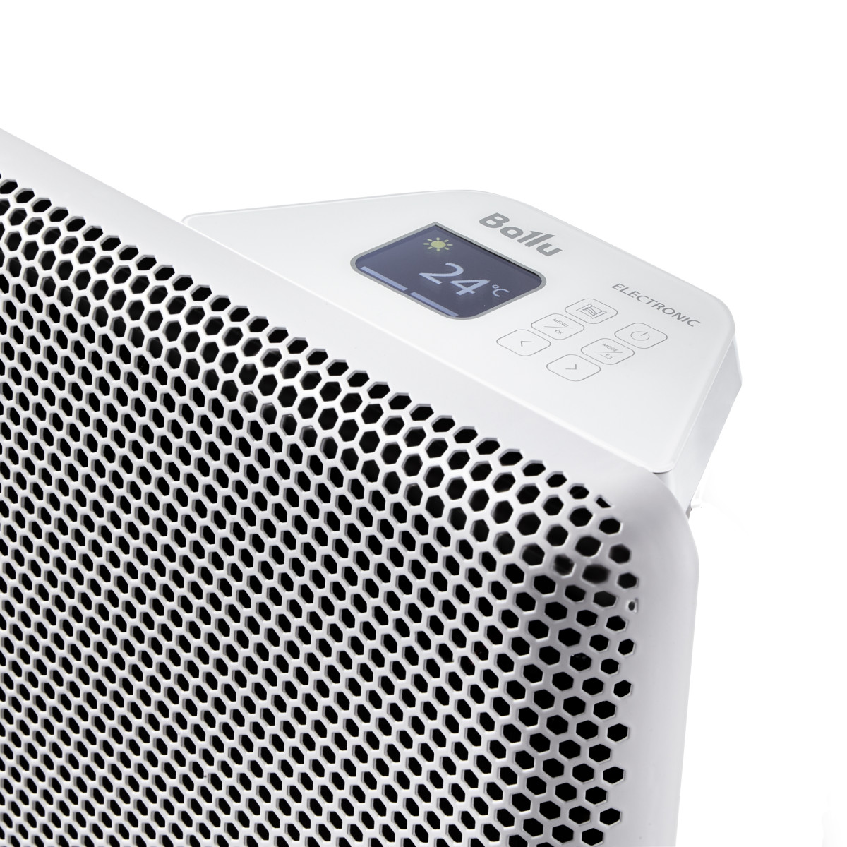 В серии электрических конвекторов Apollo Infrared соединились надежность, неповторимый дизайн и безупречное качество прибора. Плавные линии корпуса в сочетании с передовыми технологиями позволяют наслаждаться теплом «со вкусом». Микатермический нагревательный элемент создает эффект «солнечного тепла». Данный элемент представляет собой пластину, покрытую слюдой. Он обеспечивает быстрый и равномерный обогрев с помощью ИК излучения, а также не сушит воздух за счёт более низкой рабочей температуры. Стильный и функциональный электронный блок управления с цветным TFT дисплеем обеспечивает удобство использования, а выносной датчик температуры позволяет точно поддерживать заданную температуру. Эффективен для помещений, площадью до 20 м².