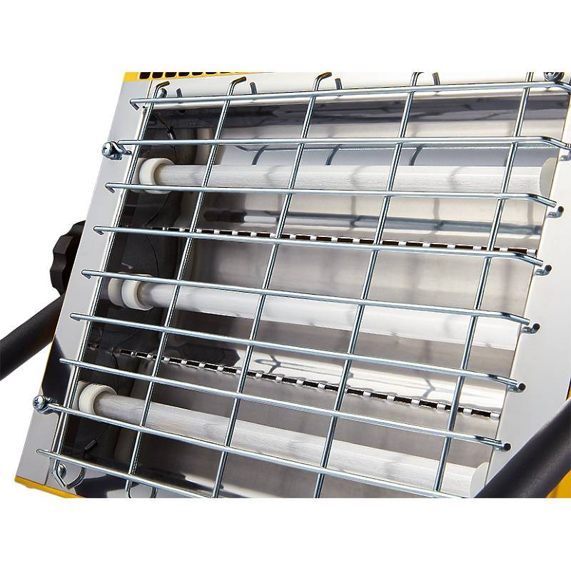 Мобильный ламповый инфракрасный обогреватель BIH-LM-1.5-R – универсальный обогреватель мощностью до 1.5 кВт. Прибор имеет 3 режима работы и обеспечивает мощный, направленный обогрев даже на ветру и при отрицательных температурах. В конструкции применена система Rotate system с фиксаторами угла наклона, позволяющая направить излучение обогревателя на необходимую высоту. Благодаря специальной опоре на защёлках, прибор можно повесить на стену. Прочный стальной корпус защищает прибор от ударов и механических повреждений. Кварцевые инфракрасные лампы защищены хромированной решеткой. Идеально подходит для локального обогрева рабочих мест на стройплощадках, на малых производствах, для быстрой разморозки механизмов, трубопроводов, для осушения стен и окрашенных поверхностей.