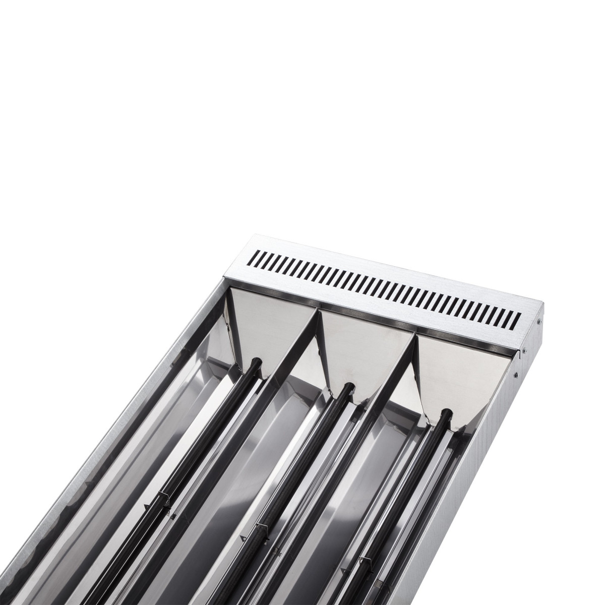 Модель оснащается уникальными параболическими отражателями для создания направленного сфокусированного теплового потока и обеспечения эффективного локального обогрева. Нагревательными элементами служат высокотемпературные ТЭНы с оболочкой из спецсплава Incoloy® с высоким содержанием никеля и титана для долговременной эксплуатации в тяжелых условиях. Обогреватель имеет высокую степень пылевлагозащиты IP54 и может применяться во влажных помещениях и на открытом воздухе. В комплект входит многофункциональный поворотный кронштейн, позволяющий установку обогревателей на потолок или стену под углом для равномерного обогрева с разных сторон.